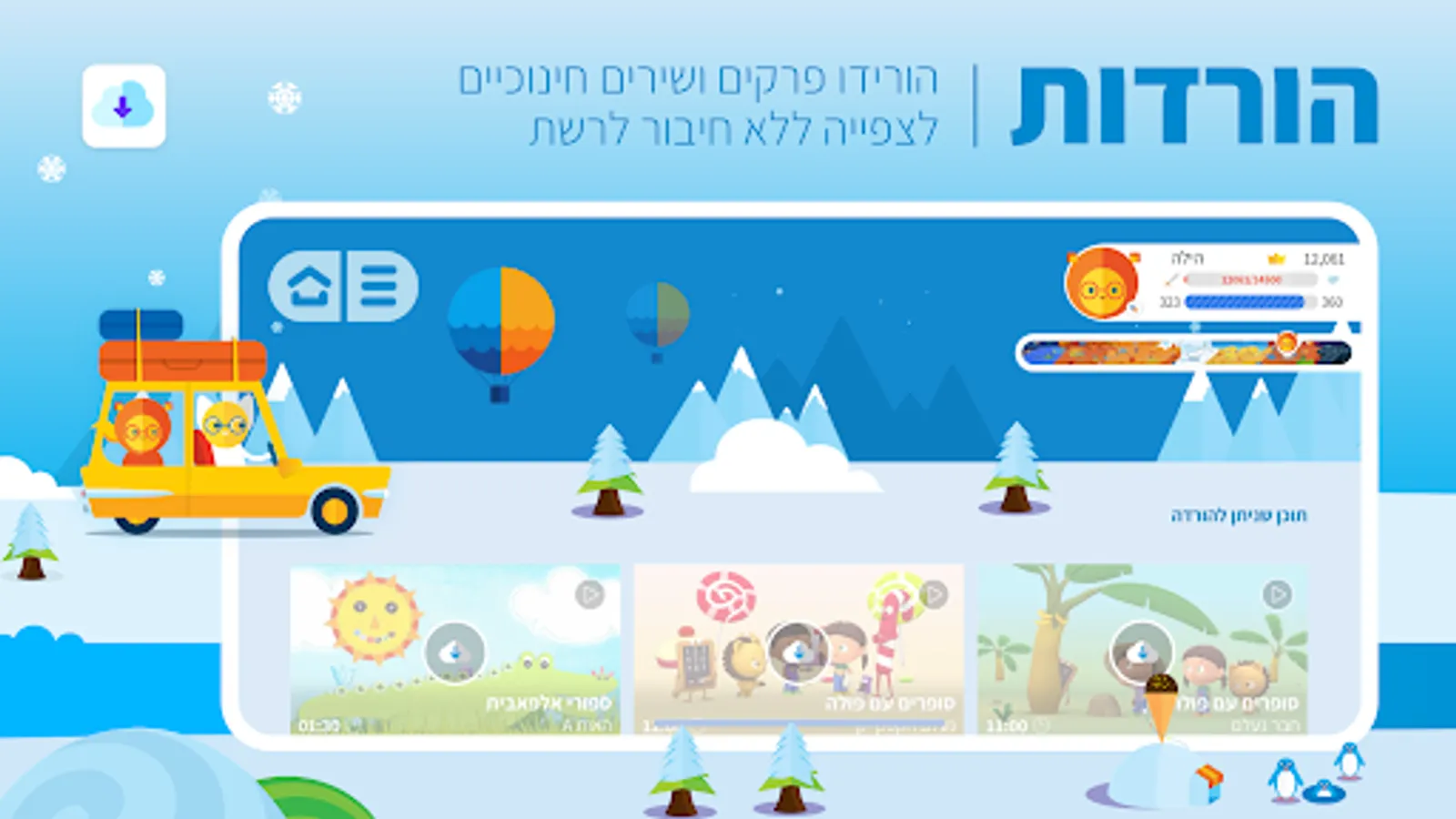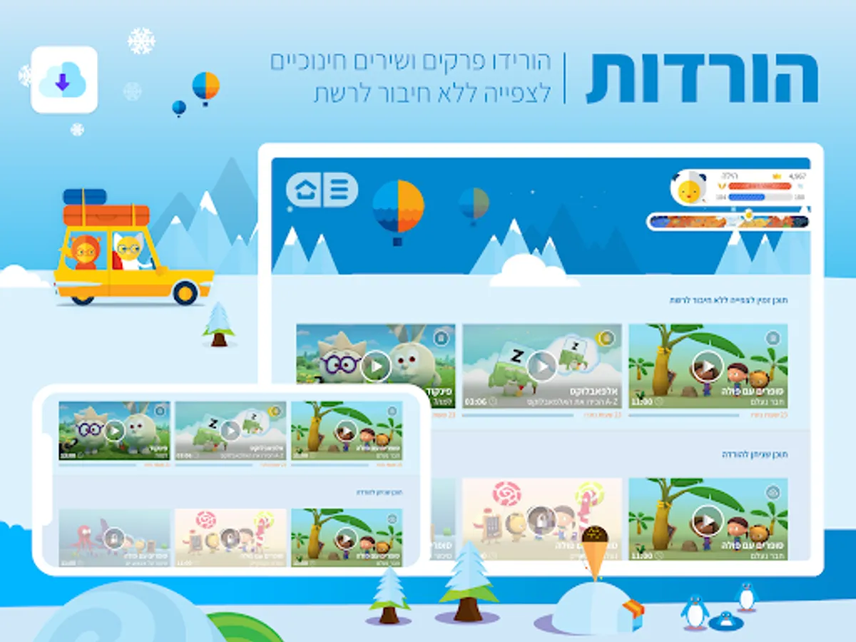 • Hundreds of episodes of the world's best educational programs for children - in Hebrew and English