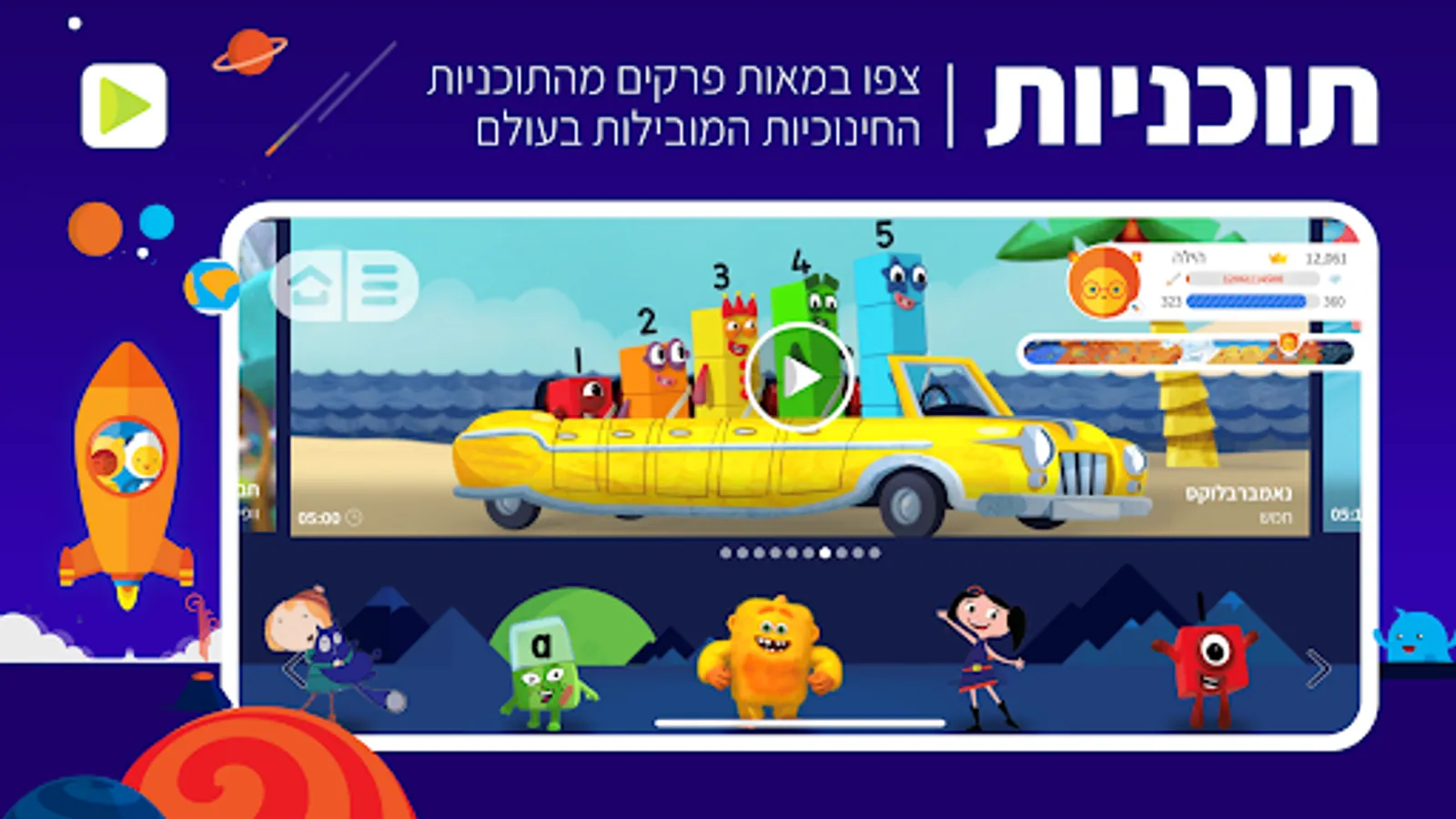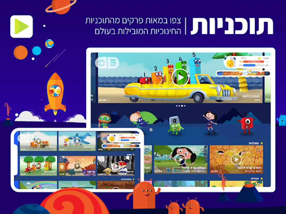 • Programs: Hundreds of episodes from the world's best educational series adapted to the Hebrew language