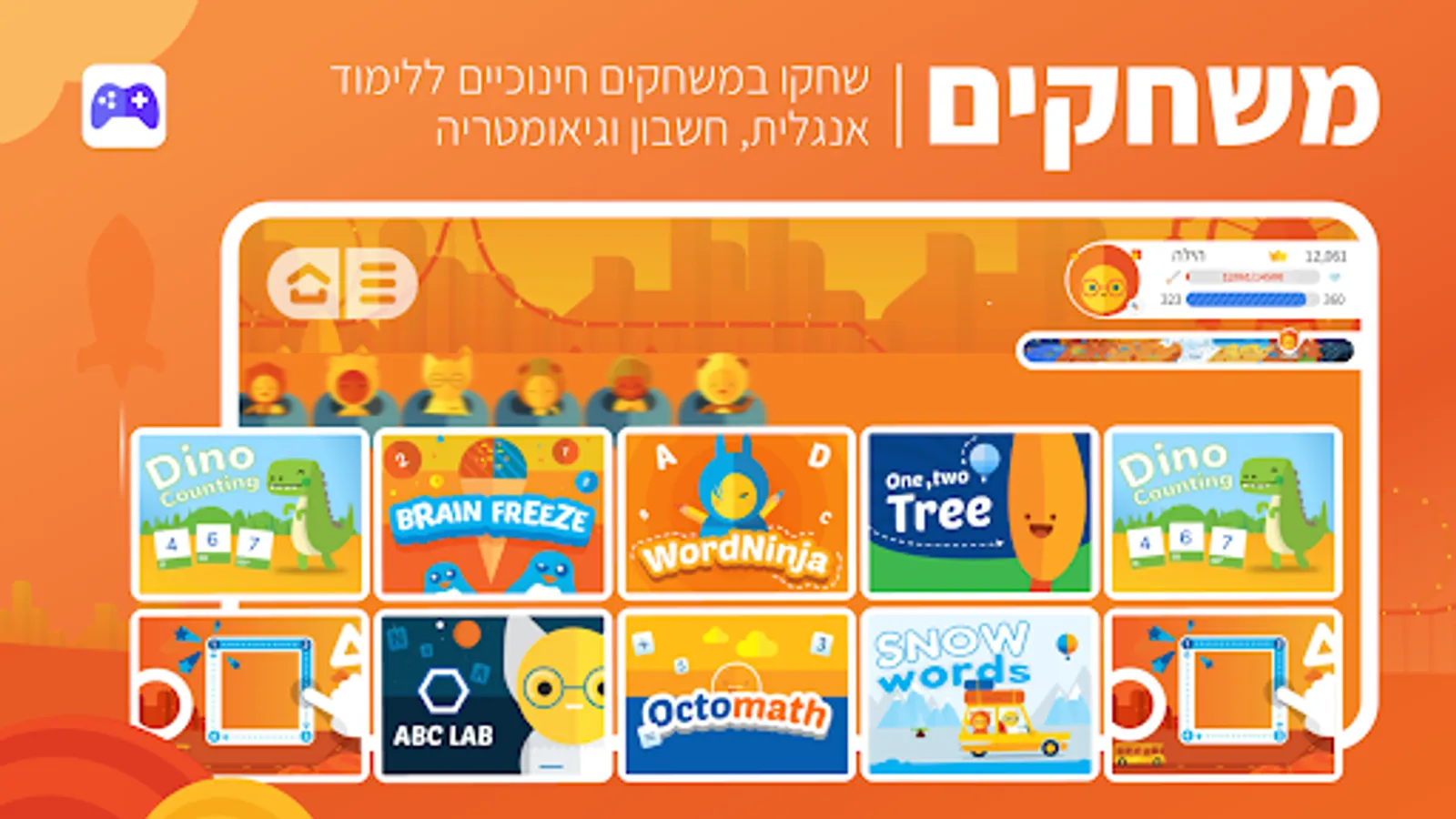 • Games: Educational games for learning English, arithmetic and geometry