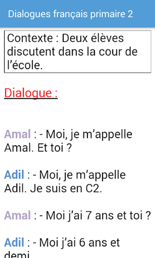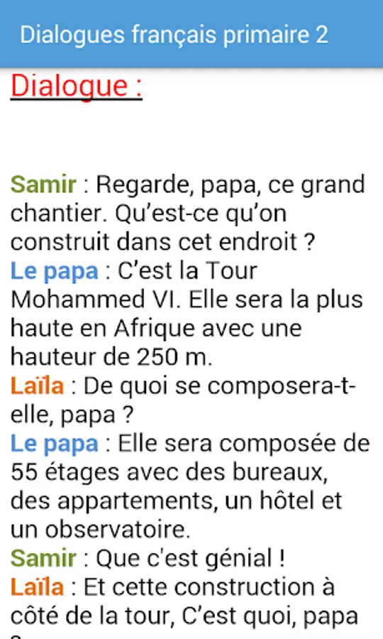 Primary French Dialogues 2 is a simple and easy to use French language learning application.