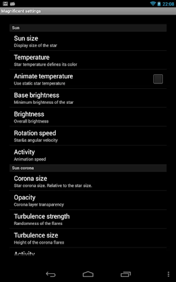 This application is a 3D live wallpaper. Also it is your very own Sun! Unlimate Sun praising machine. Every Warrior of the Sun should have it. If only I could be so grossly incandescent!
