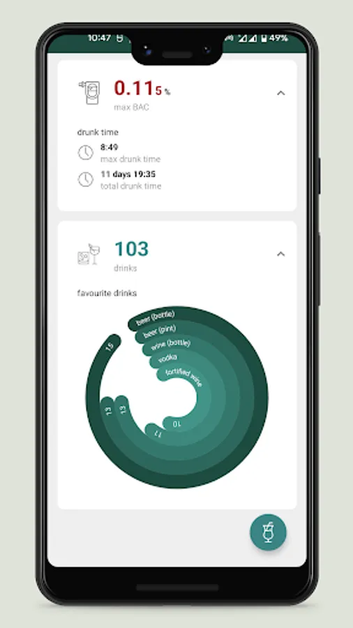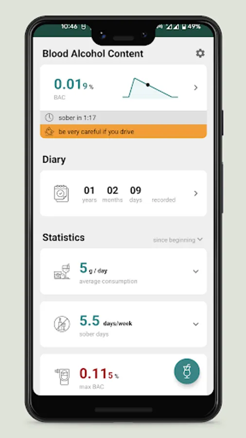 AlcoDiary also allows you to track your alcohol consumption over time. This allows you to compare your statistics with public health recommendations or your own targets.
