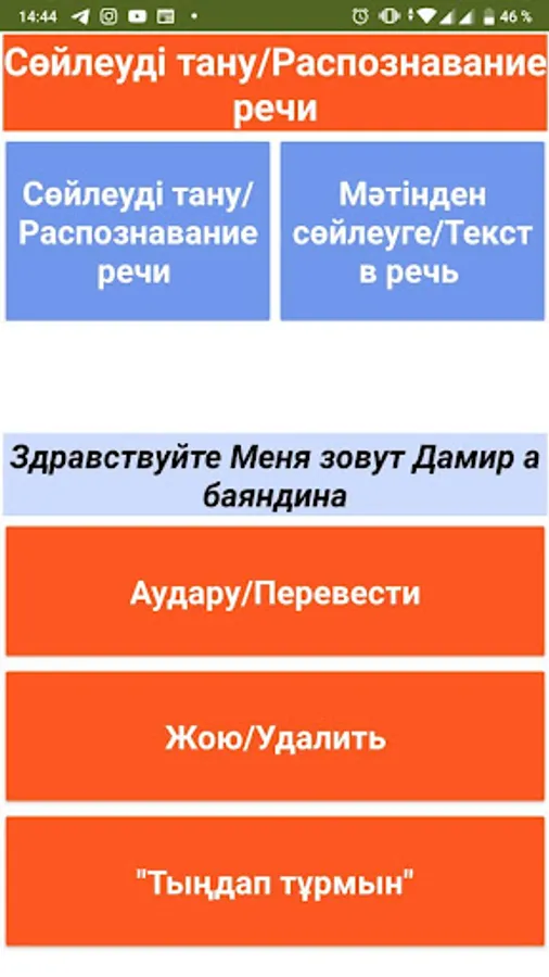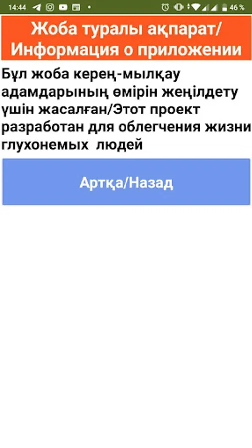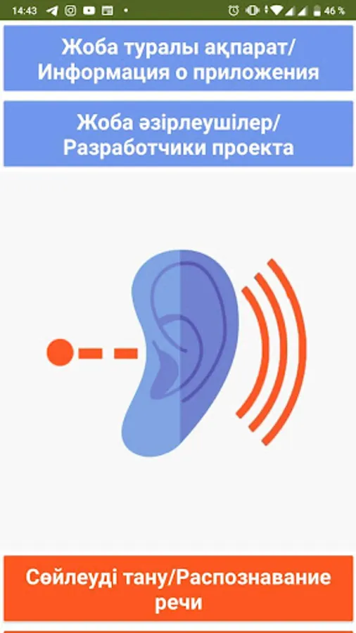 If during the absence of the Internet, it seemed to particular people that they are the only ones without support and like-minded people, now, in the age of information technologies, social problems are being raised and solved at the highest level. In the Republic of Kazakhstan, the presence of hearing-impaired and deaf-and-dumb people is common, every day our team meets citizens with this peculiarity, because the idea of creating an application with which both parties can understand each other, and most importantly, communicate with ease, caught fire in our minds. The program, which in a matter of seconds translates direct speech into text, which is divided by punctuation marks and understandable to the reader, also reads written for the speed of communication. A person with hearing problems and a person without them will be able to talk without any obstacles. Our application has 5 screenshots: speech recognition, in which you can select functions like “translate” and “delete”, as well as by clicking the button with the name of the program you can go to screen 3, where you can hear what is written or read what is said with the help of a microphone. The remaining two screens tell about the program and the developers themselves. A distinctive feature of other programs is bilingual. We created the first program in the Kazakh and Russian languages, especially for the citizens of our country, since such applications were not observed. The hearing-impaired part of the population of Kazakhstan feels forgotten, since knowing only the Kazakh language, they do not fall into the group of people for whom many such applications are created. The design of the program will be convenient for all users, a large and prominent font, pleasant colors to the eyes, a special design, as well as users will understand as much as possible how everything is arranged, which is a huge plus, because the application will be used not only by advanced youth, but also by the adult population which needs a detailed explanation. Our program clearly and accurately recognizes the speech, and also clearly makes the written text out loud, which means the absence of errors in the conversation and any unpleasant moments in the setting.