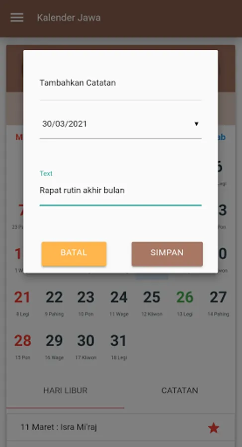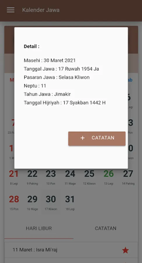 Complete Javanese Calendar is a Javanese calendar application that is equipped with a hijriyah calendar and a Javanese national and market calendar.