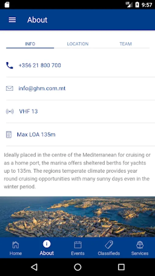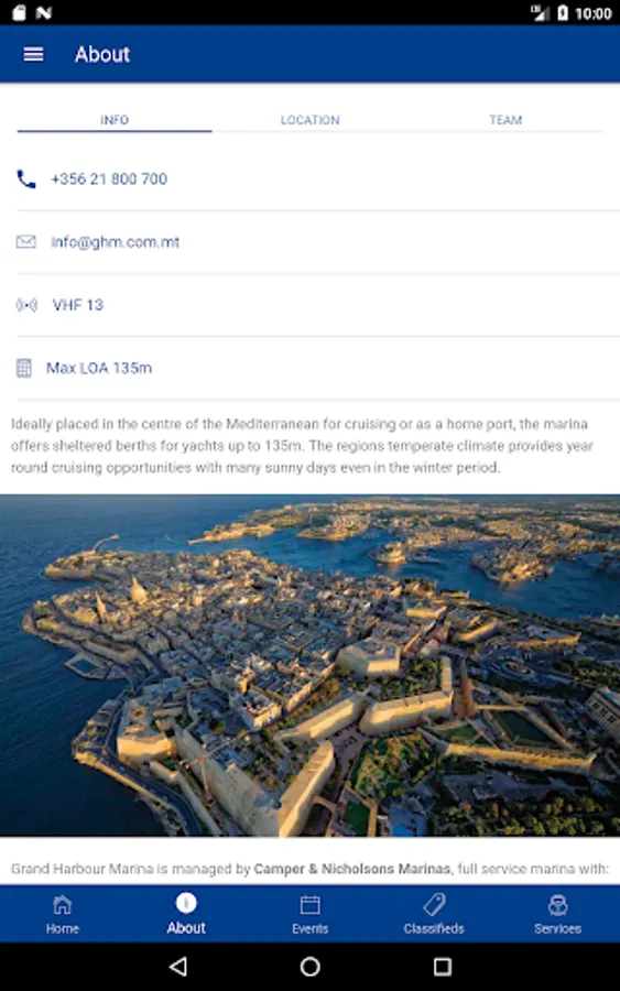 - Basic information on Grand Harbour Marina and its whereabouts.