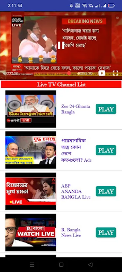 Online Khobor Live Bangla Language. Online Sanbad Live App. Local Live Channel and Sanbad Khobor Video Showing in our app. Any time anywhere quick watch live channel and Sanbad.