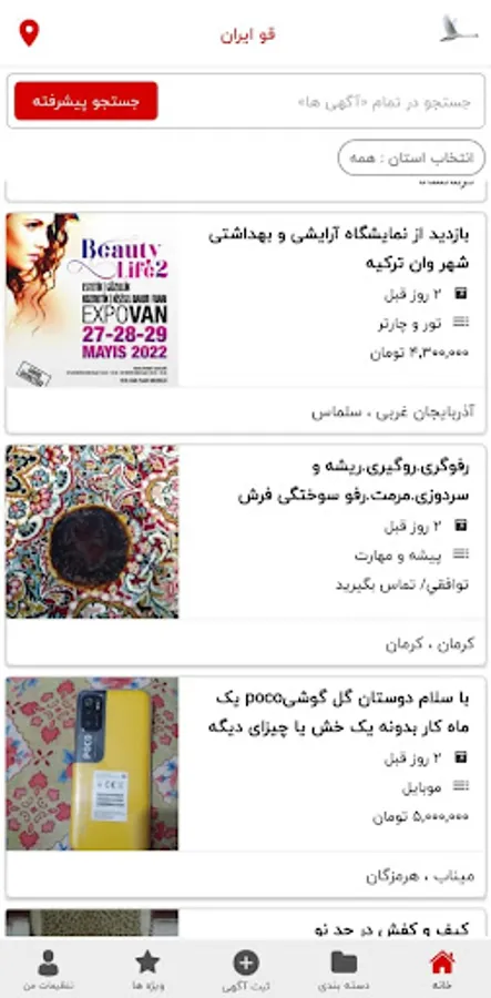 For the first time in Iran, in addition to being able to have free ads in all categories beyond 30 days in the application and GHOOIRAN.COM site, you can visit our website at GHOOIRAN.COM, in addition to seeing your ads, videos Watch fighter jets and maneuvers on this popular site