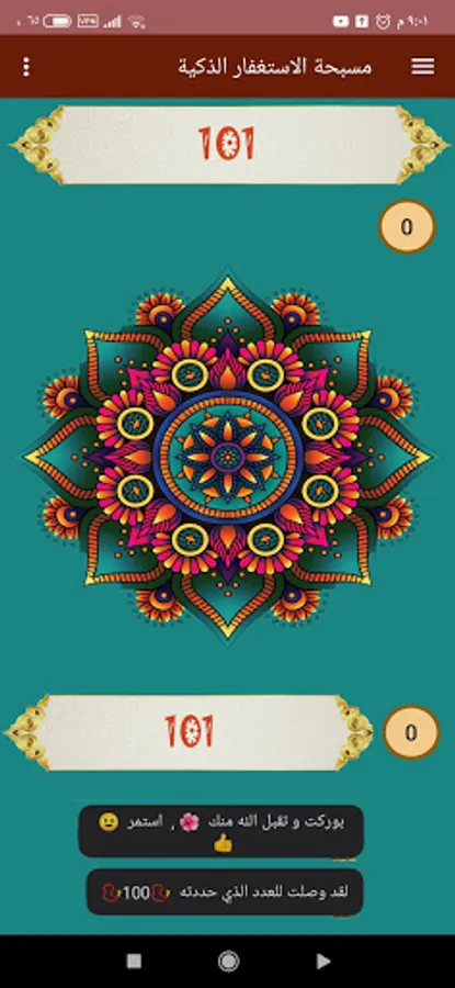 - The presence of a beautiful feature, which is an alert when a specific number you enter, the alert is through vibration and an encouraging text appears on the screen, and you can reset the count after you reach the number or make it complete the count.
