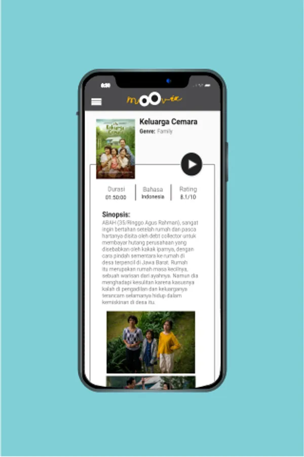 Moovie adalah aplikasi yang memberikan informasi film terbaru untuk Referensi anda dalam menyaksikan aneka film.