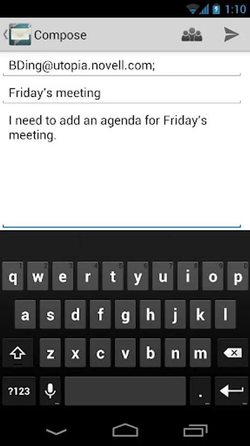 GW Mail is an email client for Novell GroupWise. With this app you get a much better interface than Novell delivers by default through GroupWise WebAccess. This app gives you some of the enterprise features that you would not get with simple POP/IMAP - like access to your Frequent Contacts and GroupWise address book.
