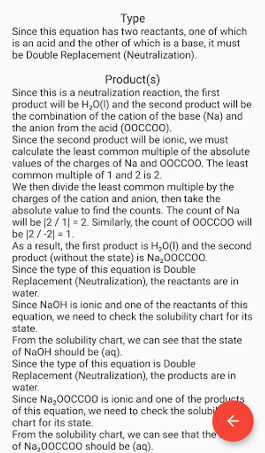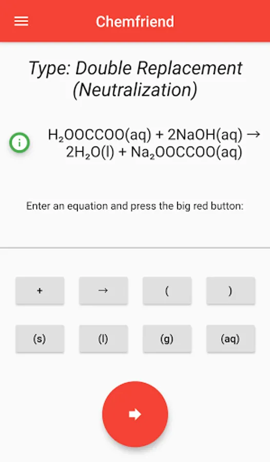 If you're not sure how the app came up with the balanced equation, just tap the info button beside the equation and look through the detailed, step-by-step explanation that describes each part of the process.