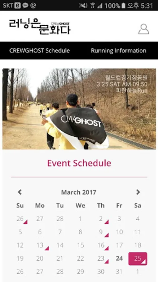 -The application for sharing events performed by the running clubs of the Republic of Korea.