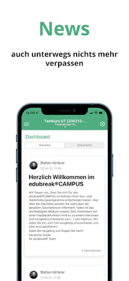 Don't miss new promotions in your courses or reactions to your posts. With the push notifications of the edubreak®APP, you will always be informed directly on your smartphone when there is something new. Even if you closed the app.