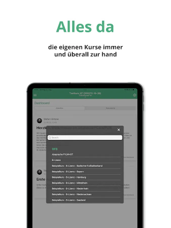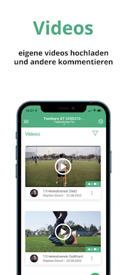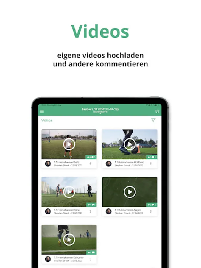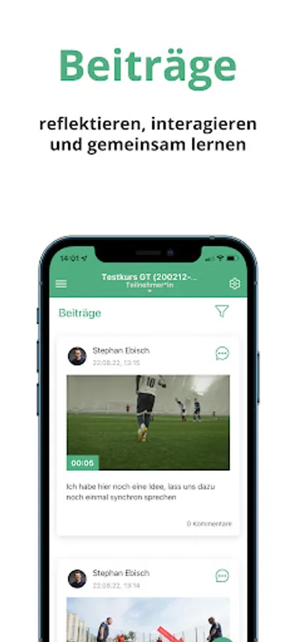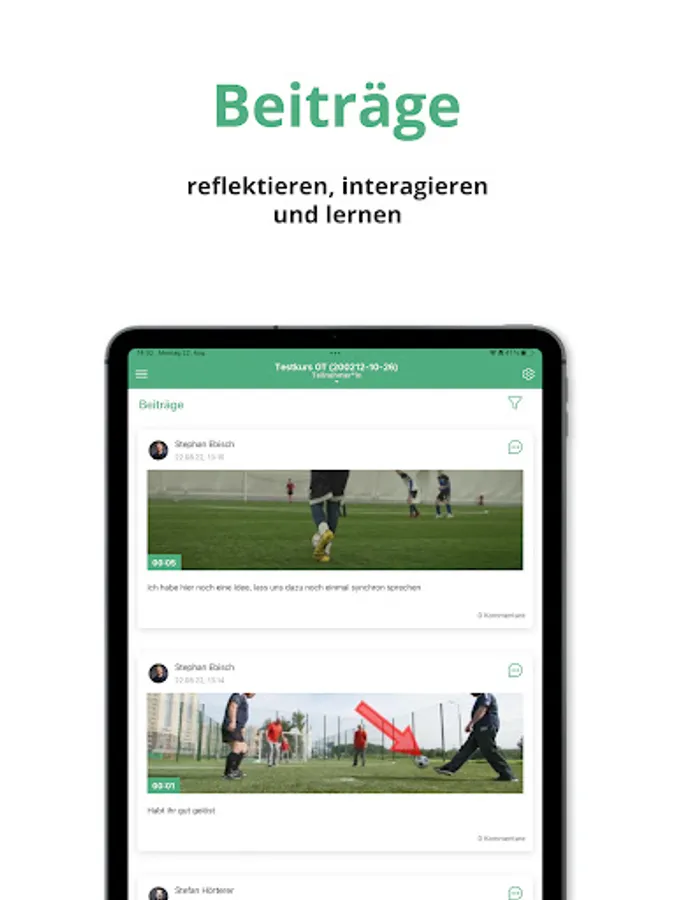 With the DFB OnlineCampus app, all users of a DFB OnlineCampus can now record their videos directly with their smartphones or tablets and post them in the respective course of their DFB OnlineCampus.