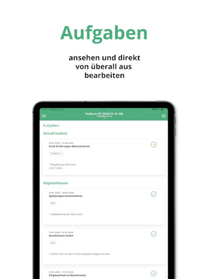 Access your tasks and messages from anywhere. In addition to the content of the tasks, you can see the processing period and the feedback method set. Track your progress and always keep an eye on your open tasks.