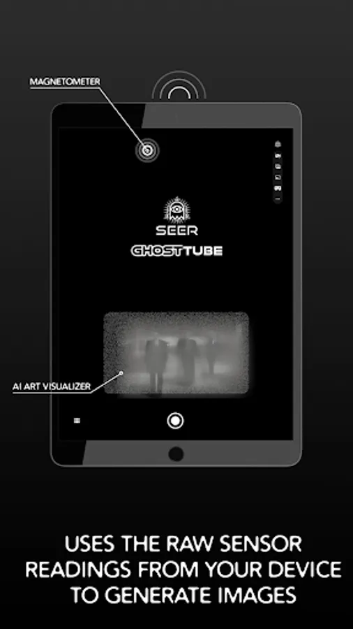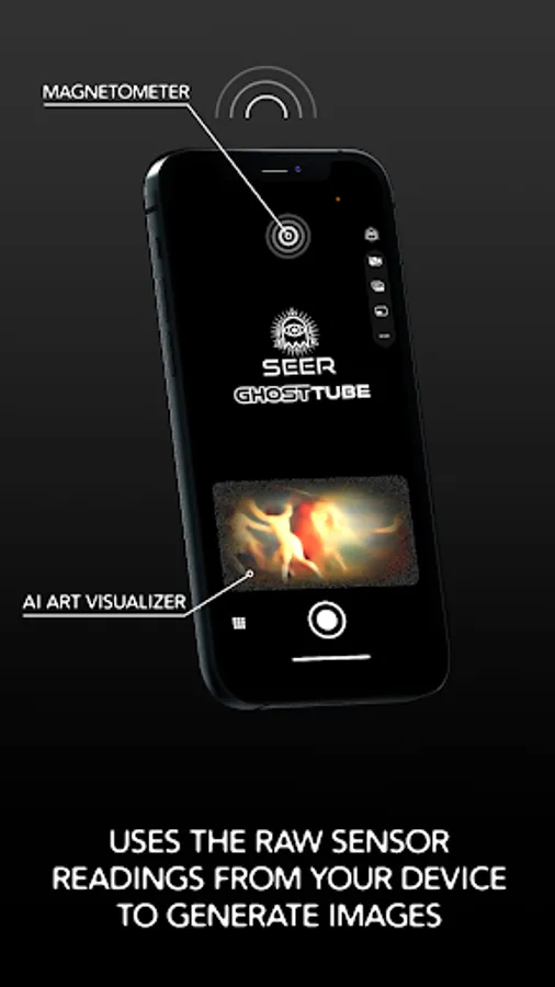 GhostTube SEER uses your mobile device's actual sensors to detect fluctuations in the environment, and uses these to select words from the pre-populated word bank. It runs selected words through an advanced artificial intelligence algorithm to produce unique, AI-generated visuals. It can also be used with GhostTube Lens, the world's first virtual reality headset for paranormal investigators, for a more immersive experience and adding a whole new dimension to your paranormal experiments.