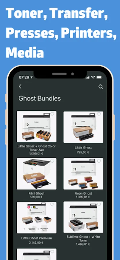 The Ghost App features all our White Toner Cartridges helping you find the right toner for your printer at your fingertips. You can also choose from a wide range of transfer media and heat presses. The Ghost App is the one-stop-shop for your transfer business weather you are new to this indusry or just want to restock on supplies.