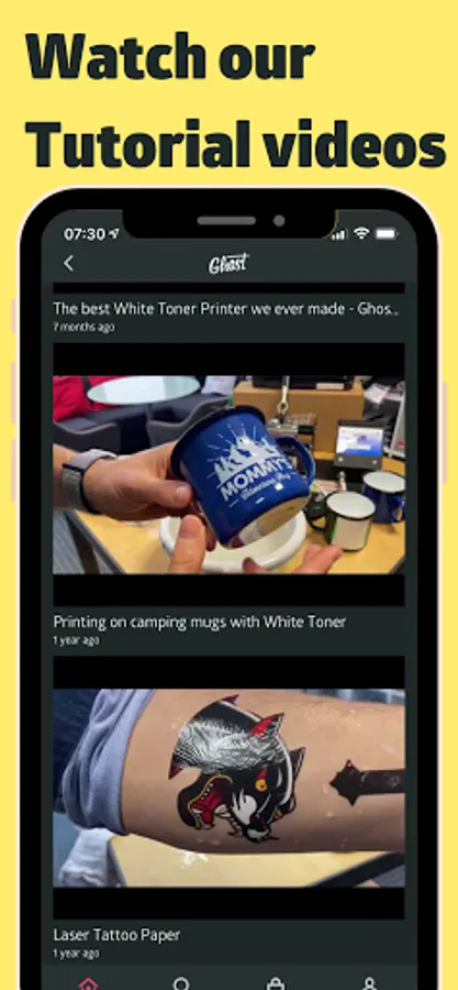 With tons of useful help- and support content the App helps you to navigate in the confusing universe of textile and hard surface decoration. Our follow-along video tutorials help beginners getting it right the first time and provide useful tips and tricks for the more experienced user. Dive into the world of Ghost on your phone, today!