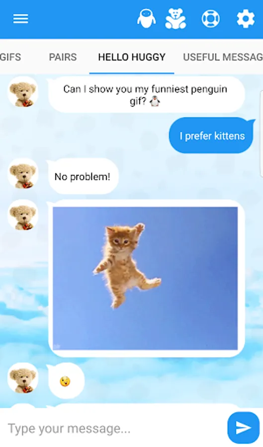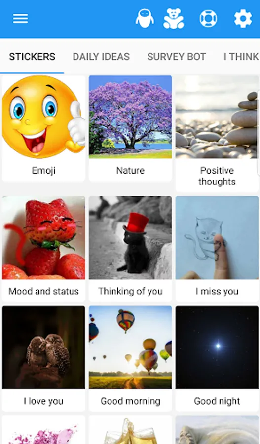 - 30 convenient sticker categories: I miss you, I love you, Good morning, Happy birthday, Kittens, Emoji…