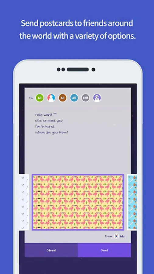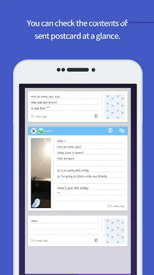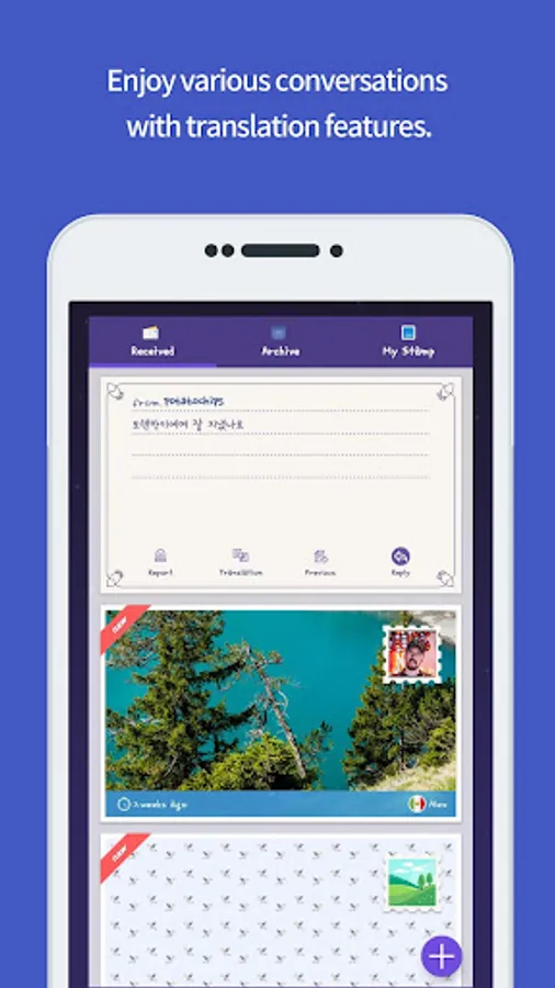 - Don’t be shy to talk to international friends! Free translating function can help you to read postcard messages in your own language.