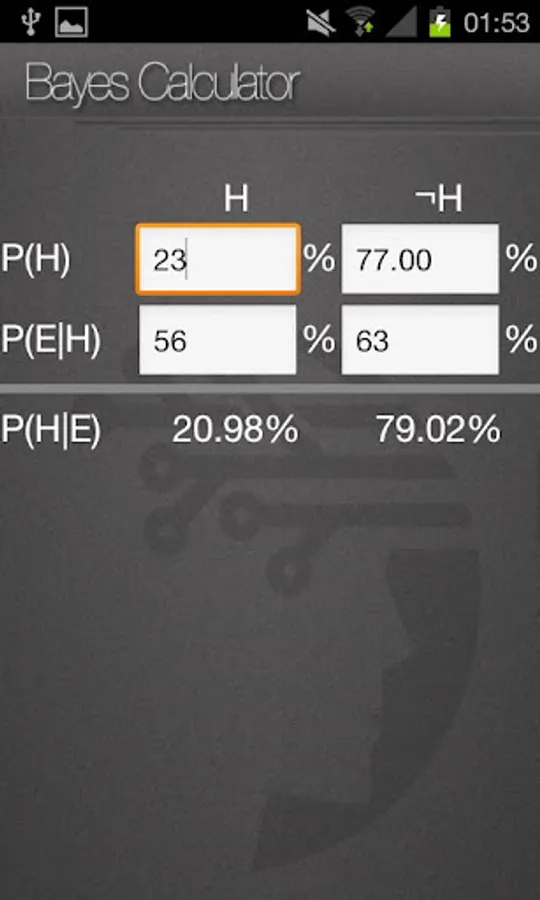 - If the probability at the bottom does not make sense (is over %100 or under 0%) make sure you've entered valid probabilities for your priors.