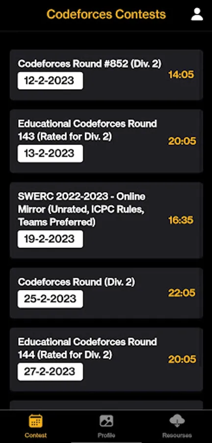 From This App CodeforcesInfo you can get Upcomming codeforces contest details and you can also gwt Users details like Rating and Some good resources for learing DSA