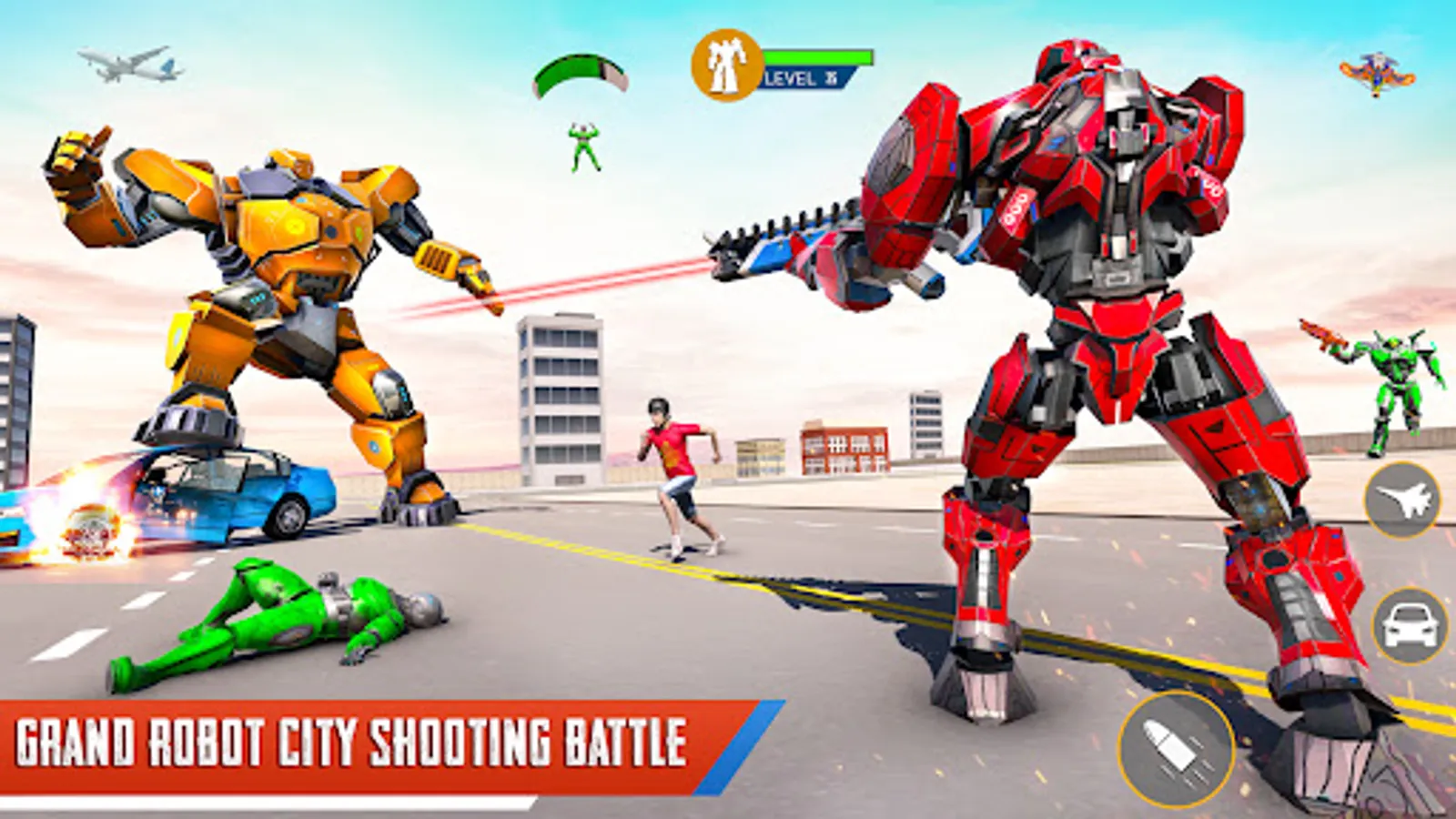 This all vehicle robot game consists of various chapters and levels. Different ways of Robot entry and AI spawning in robotic city make gameplay unique as compare to other tuk tuk robot games. Play this truck robot transportation game and achieve the impossible challenges of jet robot games and robot shooting games. Transform into different robot players and finish the grand robot wars of all vehicles robot transform game on high notes.