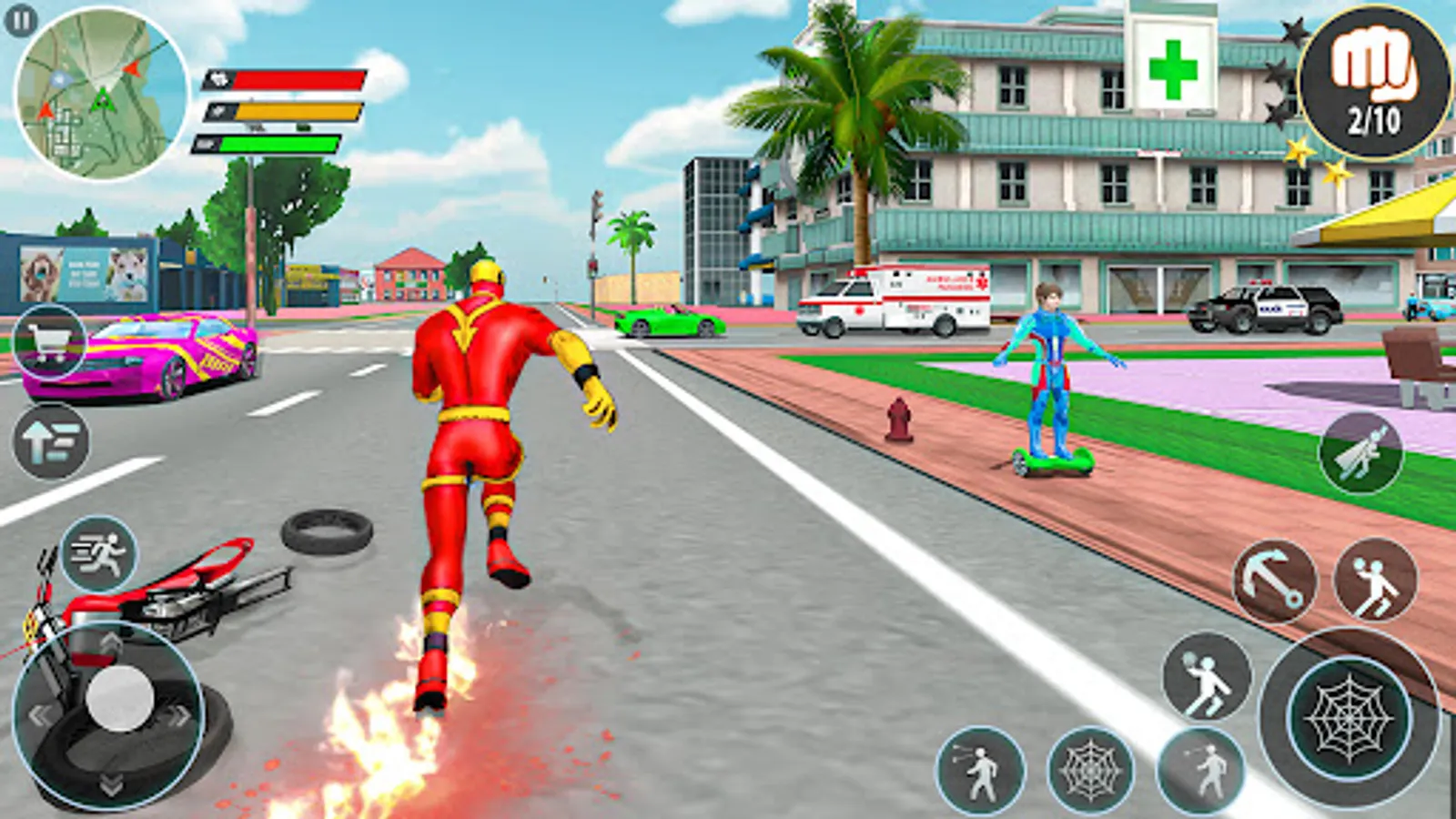 Welcome to superhero game in Vegas mafia crime city. Spider rope hero & speed superhero game is combination of Open world games. You can enjoy the thrilling experience of superhero web powers and flying rope powers of speed rope hero in gun shooting games. If you are a true lover of car snatching games in crime mafia city then this speed rope hero game is best for you. Survive as speed hero in this open world crime city to save the civilians from gangster mafia. In this Vegas crime city game, you have to complete Police chase missions as flying super hero. Compete the mafias of speed rope hero game and show your shooting and flying skills as superhero. Flying rope hero with ability of speed hero running on the walls is superhero of gun shooting games.