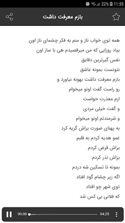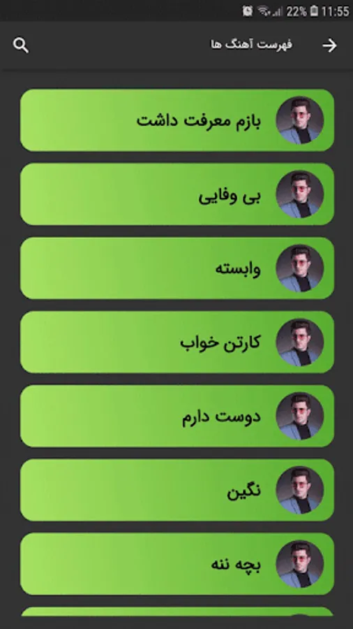 Bache Nene song/ Bache Sosol/ Bache Qorti/ Leila/ Bazem Marafadede/ Maryam/ Unfaithfulness/ Sleep Cartoon/ Dependent/ I love you/ Negin/ Ejal/ Loneliness/ Playmate/ Evil girl/ Prisoner/ Butler/ Rogue/ Shepherd/ Prince and Beggar/ Nanny/ Sayar/ Narfiq/ Brar/ How do you like it?