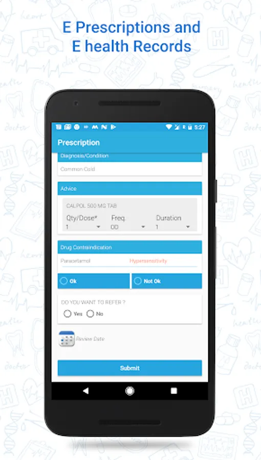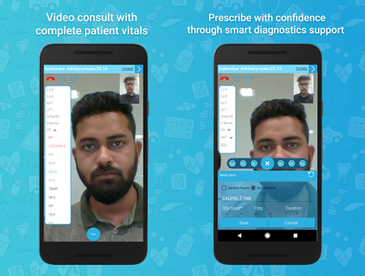 Key features include - Patient queue, Connect to patient on Audio and Video, Reconnect in case of connectivity issues, Write medications, Write investigations, visualize symptoms, visualize test reports including biochemistry, ECG, X-ray, vitals, Add notes to prescription, Set Review Date, Capture Feedback, Maintain Doctor's Profile, Show Incentives of Doctors