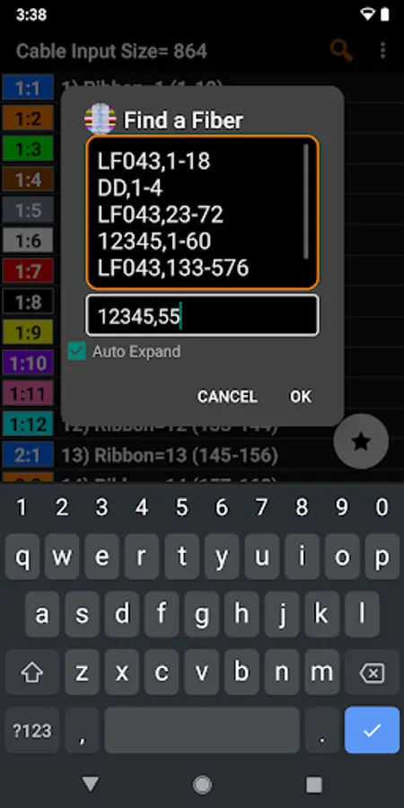 **Customers that use a Colon (":") for cable name and fiber range separation: The first time you enter a cable count you will need to manually enter your first line of count using a colon to set the app to use colon separators. To set back to using a comma again you just need to manually enter a comma in the first line to set the app properties for Double Space Auto Punctuation.