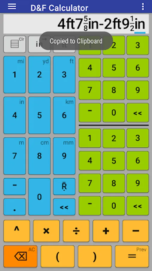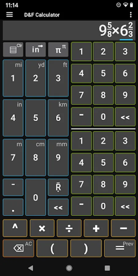 • Easy fraction entry: Blue buttons for whole numbers and Green buttons for numerator over denominators.