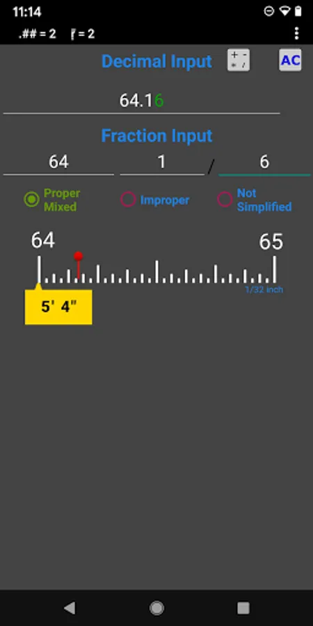 • When converting from fraction to decimal, the primary decimal display will show an eclipsed decimal value and magnifying glass to open a secondary view for large results.