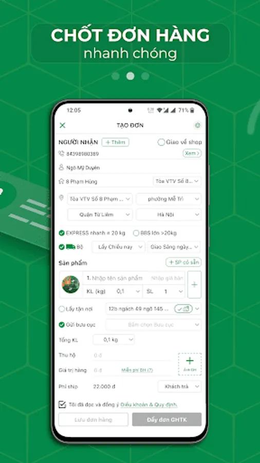 Single latch and push the application to the GHTK system right on the application with only 3 steps: chat, select information and push application.