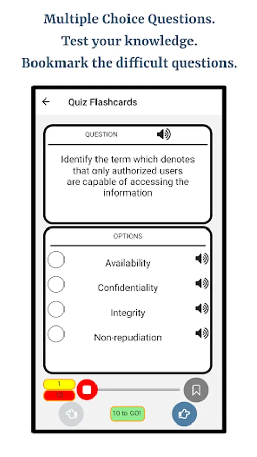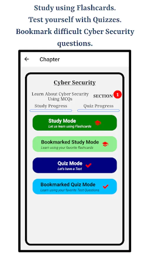 This app is a great resource to learn about Cyber Security. The app is engineered to make users perfect understanding common Cyber Security questions by studying for a very short amount of time. Audio functionality and bookmarking is available throughout the app on chapter, section, study mode and quiz modes.