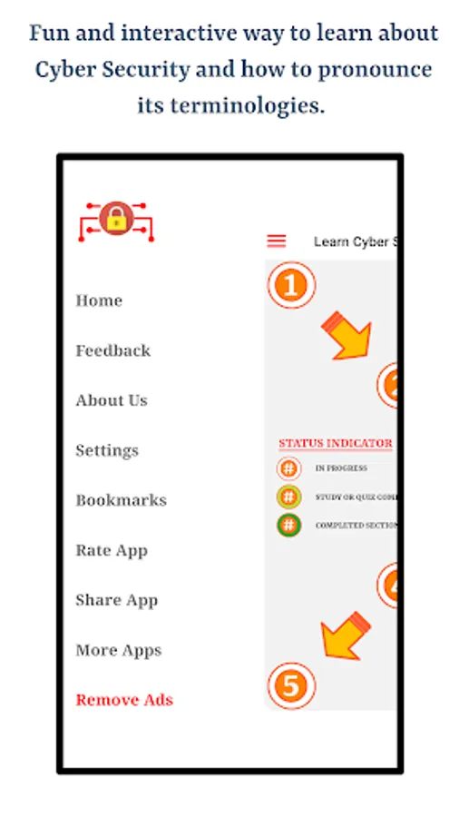 The app will help you learn the correct pronunciation of terminologies used in Cyber Security using English language. Following are the main features of this app