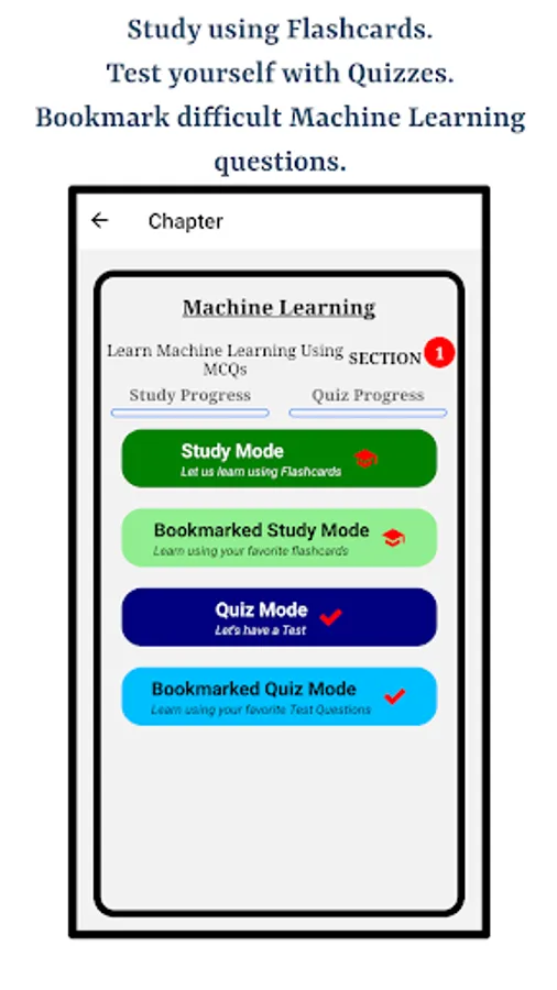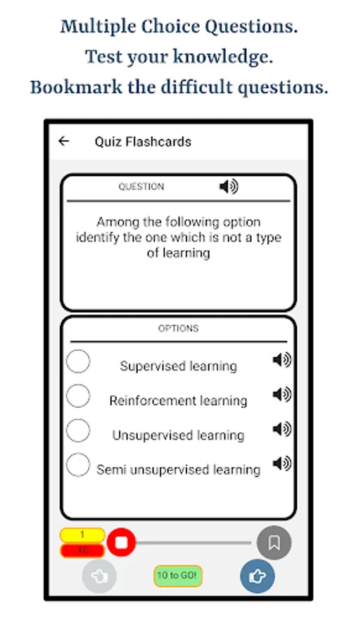 This app is a great resource to learn about Machine Learning. The app is engineered to make users perfect understanding common Machine Learning questions by studying for a very short amount of time. Audio functionality and bookmarking is available throughout the app on chapter, section, study mode and quiz modes.