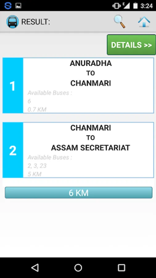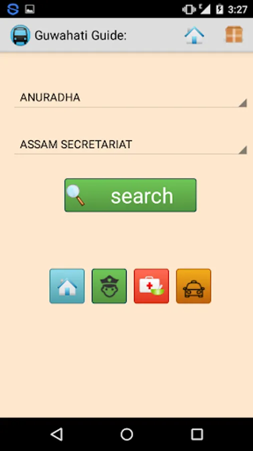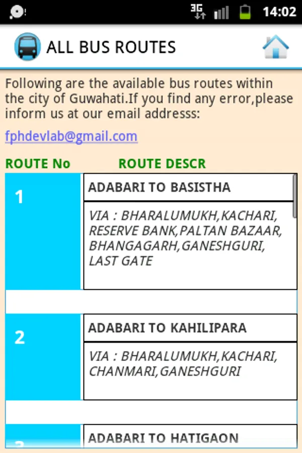 GuwahatiGuide is a utility app built to give you bus-route guidance within the city of guwahati.You can query for routes giving your starting point and destination, and the program in the app will give you best possible buses available.Even if no direct bus is available, it will give you best possible route with minimum interchanges. Apart from bus numbers, you can get distances as well.And you can get further details of the displayed route, with all the passing stations in sequence.