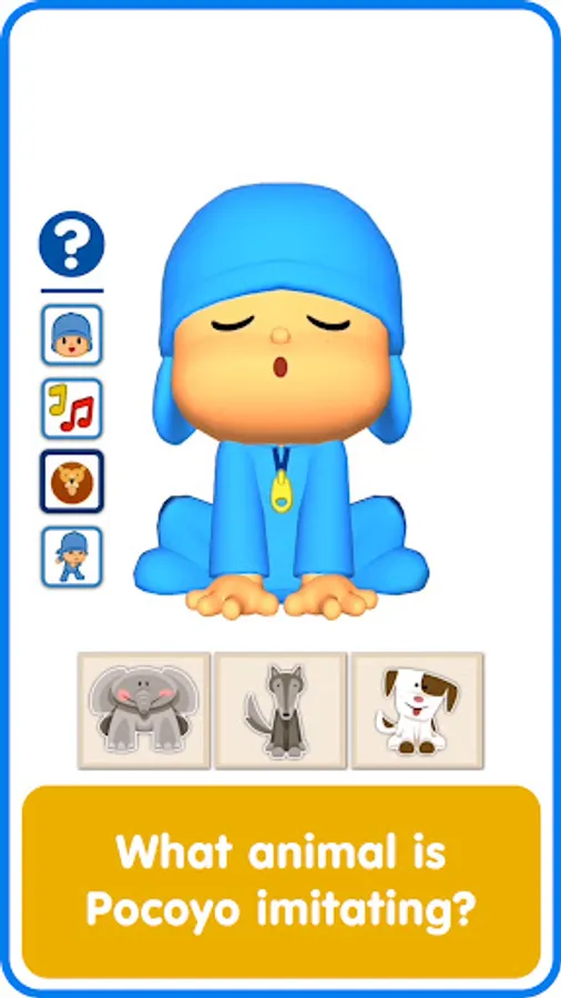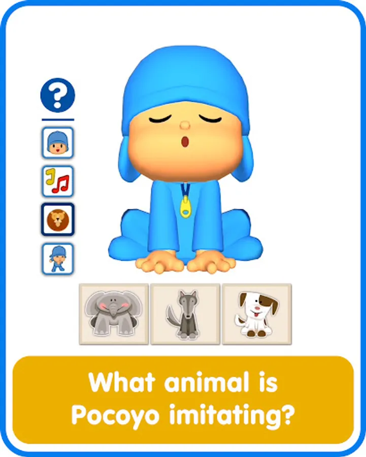 - Guess the Animal: Will you be able to guess which animal Pocoyó is imitating? Compete at home to see who gets it first! The Guessing Game is really fun.