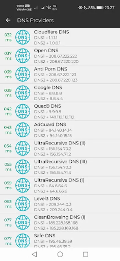 ----Fast DNS Changer over TLS is a premium feature but completely free, the purpose of which helps you become safer when accessing the internet. This feature will help any device (without root) change DNS the easiest way, support many famous DNS today such as: Google DNS, Open DNS, Cloudflare DNS, Yandex DNS, Level3 DNS, Comodo Secure DNS, Watch DNS, Safe DNS, Alternate DNS, Uncensored DNS, Quad9 DNS, Anti Porn DNS, Smart Viper DNS, AdGuard DNS, UltraRecursive DNS, CleanBrowsing DNS,...