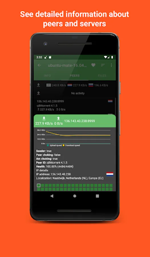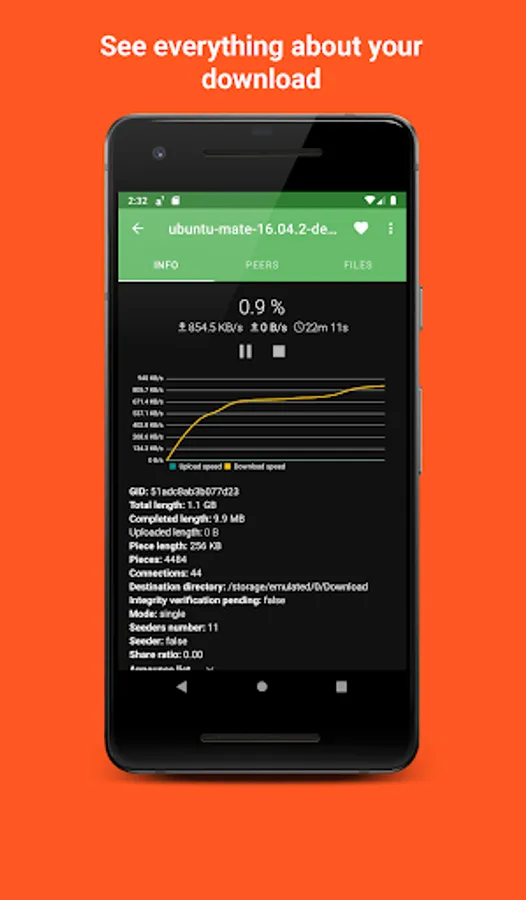 - View statistics about peers and server of your downloads