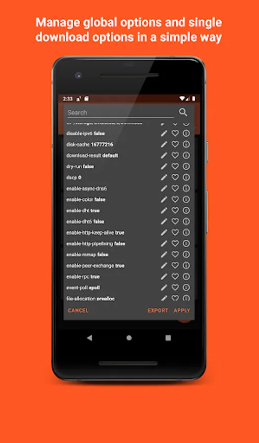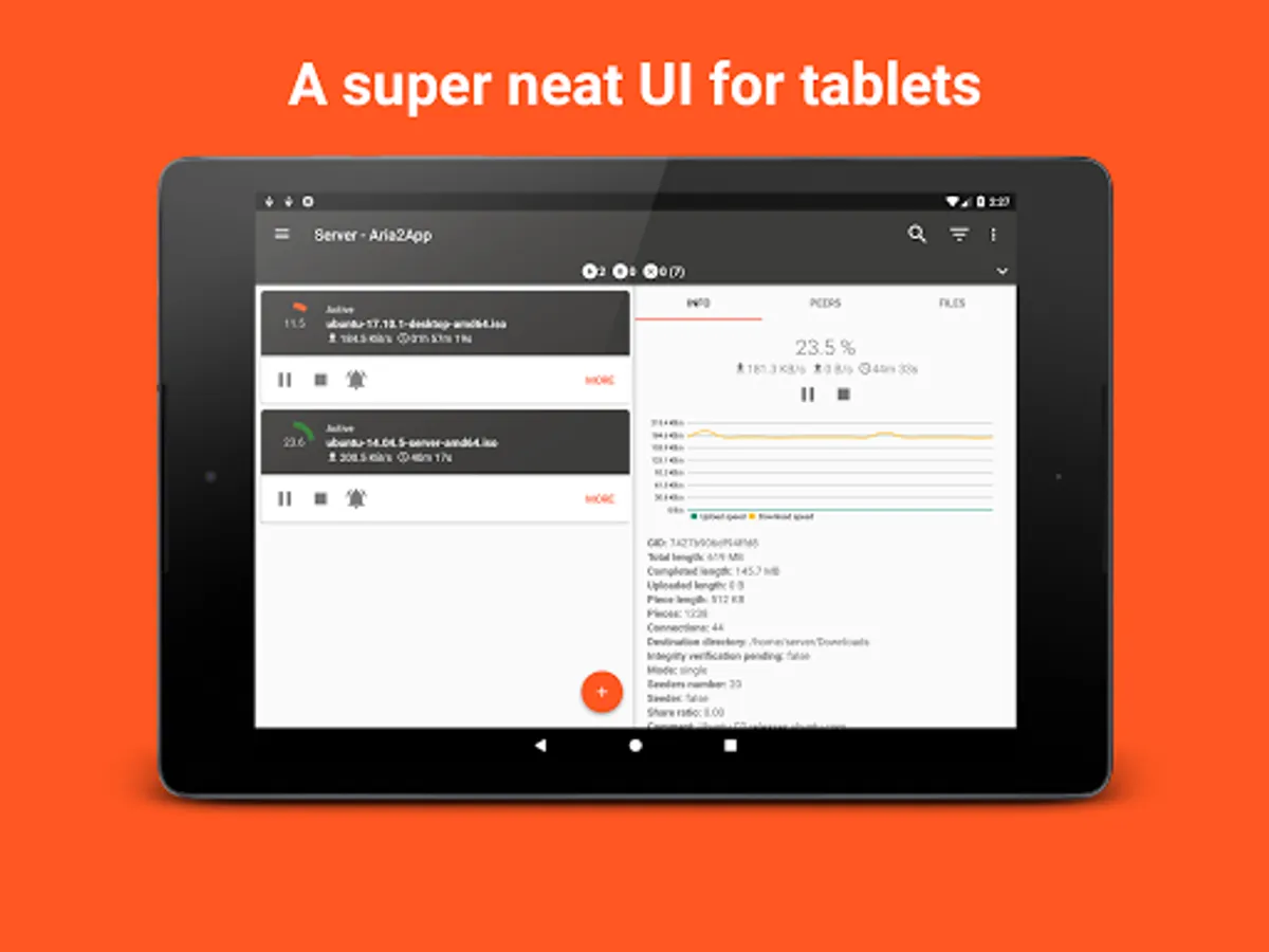 Aria2App is your portable server-grade download manager backed by aria2 directly on your device. You can also manage aria2 instances running on external devices thanks to the JSON-RPC interface.