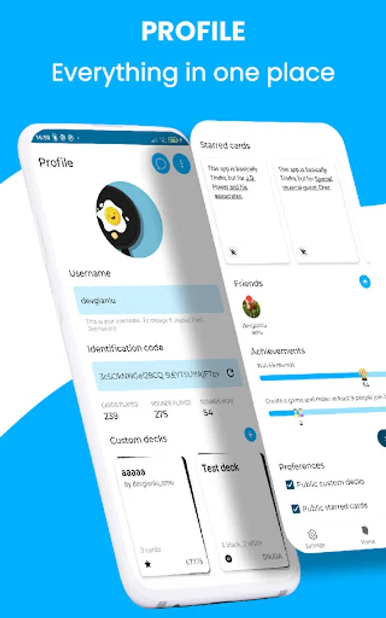 - Accumulate achievements and stats (cards and rounds played, rounds won)