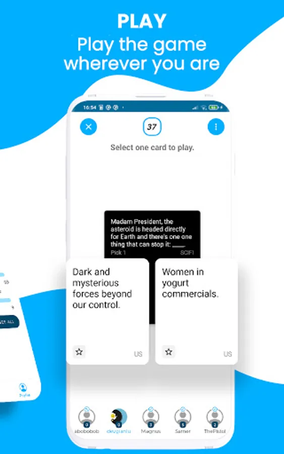 This app lets you play Pretend You're Xyzzy, an online card game, on your device wherever you are.