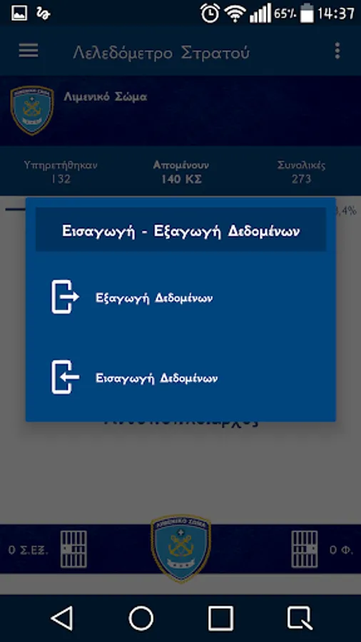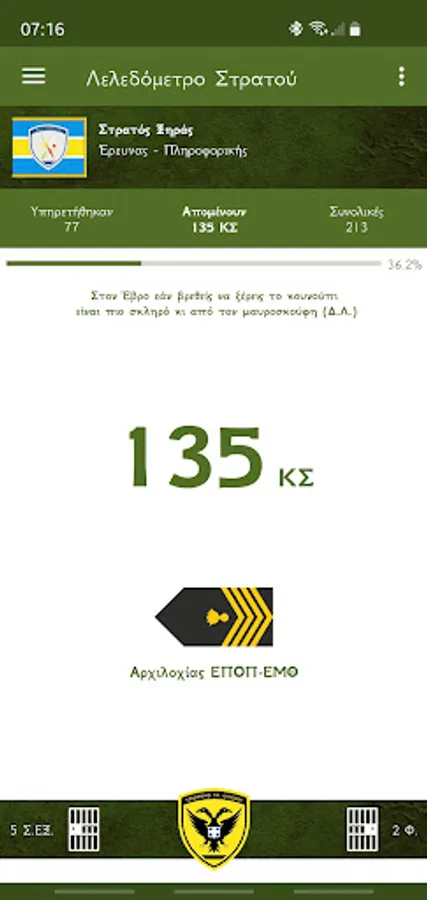 The main screen shows the rank you have according to the days you have served, which is virtual.