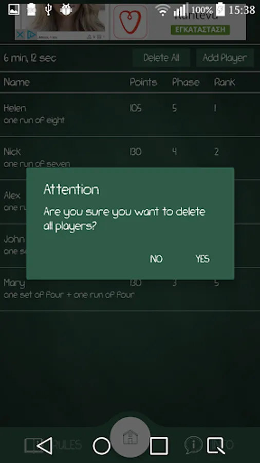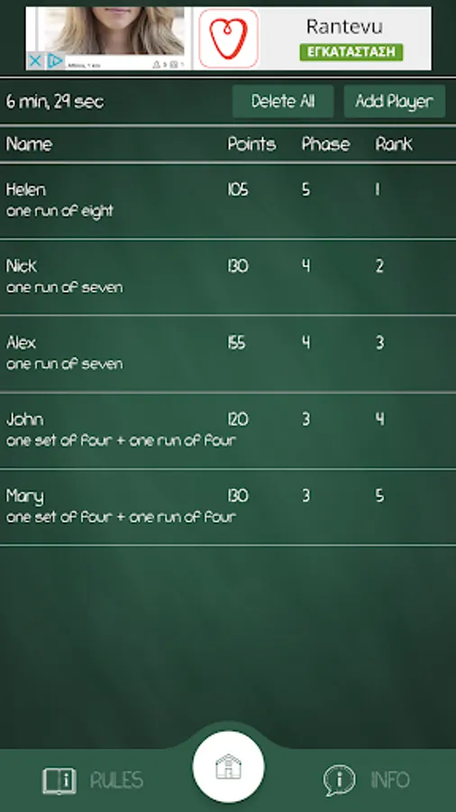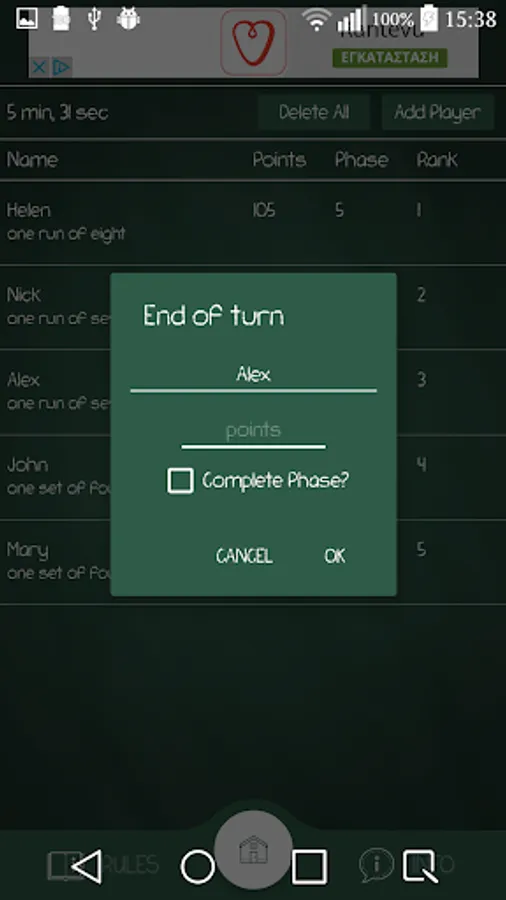With this app you can manage the Phase 10 card game scored points and phases.