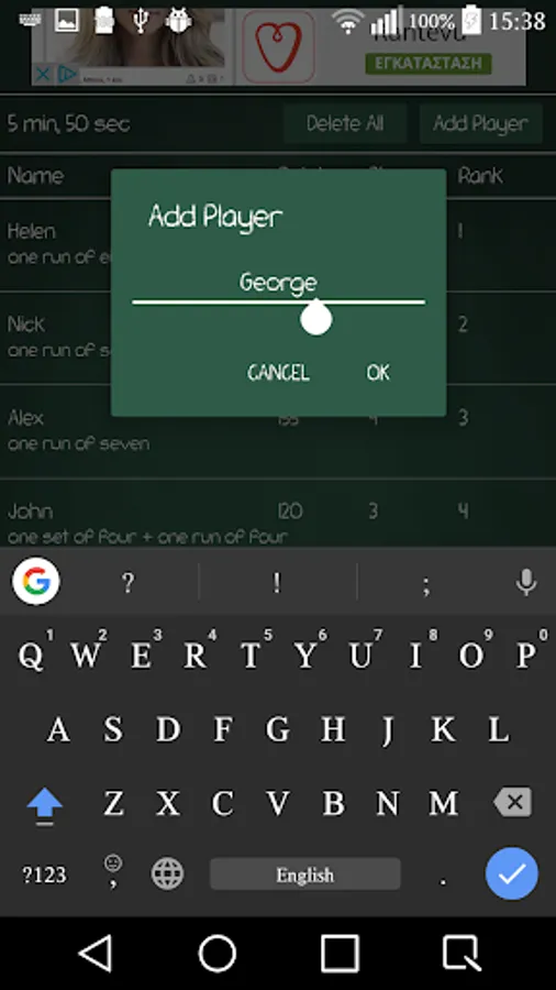Swipe to the right: Delete player