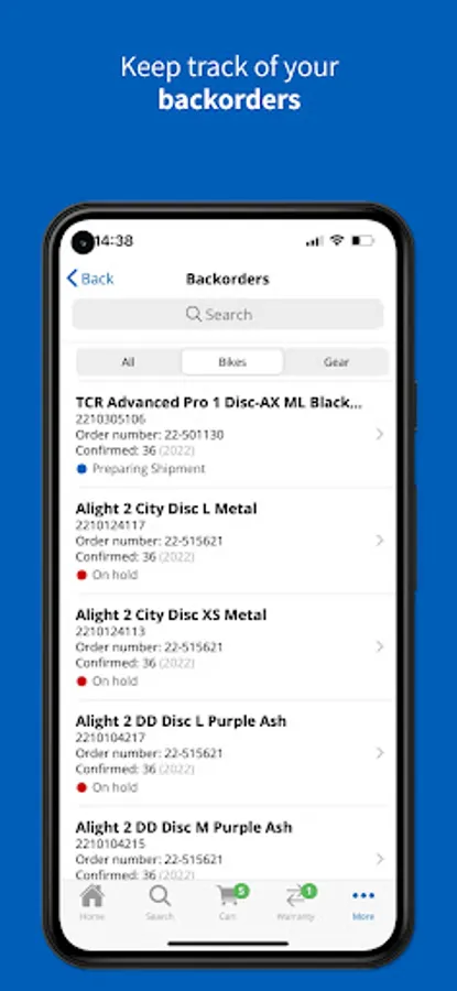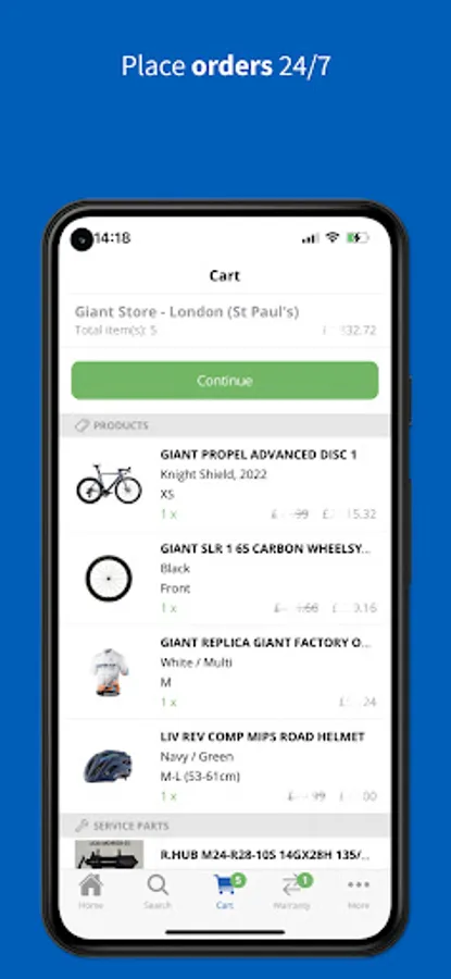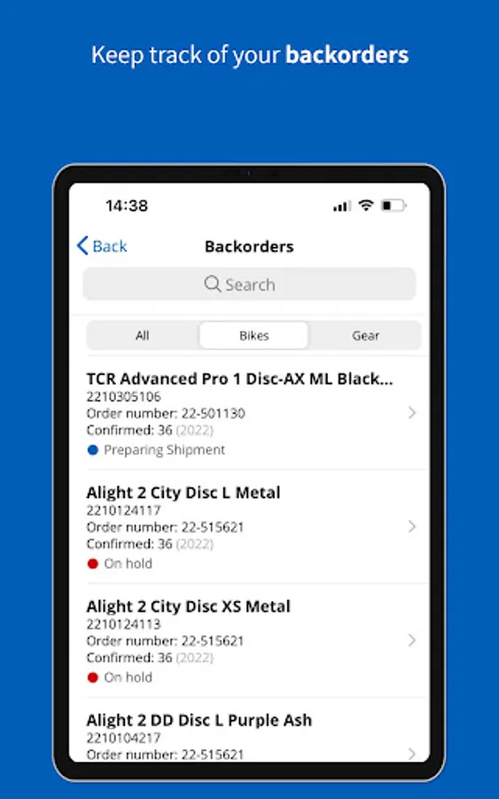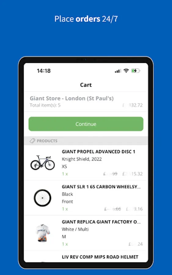 Bike stores can use the Giant Retailer App to browse and order products from the brands Giant, Liv, Momentum and CADEX.