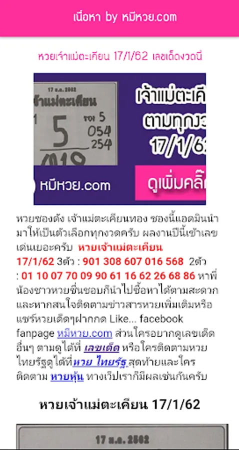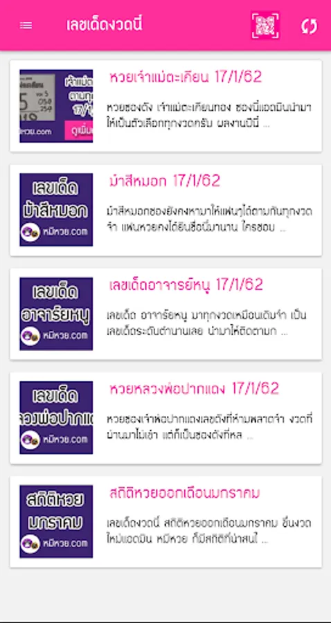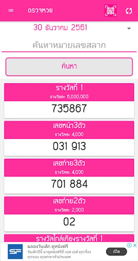 Application to check lottery QRcode, check lottery for Thai people. There are lottery results, news, lucky numbers with Push Notification system, allowing you to know the lottery results quickly before anyone else every time the lottery is released. Why do you have to check the lottery numbers? if you want to know before anyone update the results Fast, easy to use, just a few touches. this application You will not miss any news. When the results are out, you will definitely not miss it, and in addition, you can check the lottery backwards as well. Do not forget to check the lottery and follow the news of lucky numbers with us.