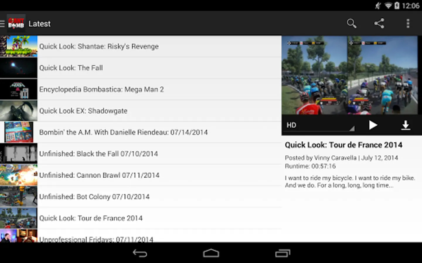 Giant Bomb Video Buddy is an unofficial companion app designed to help make it easy to enjoy Giant Bomb's video content on your phone or tablet.